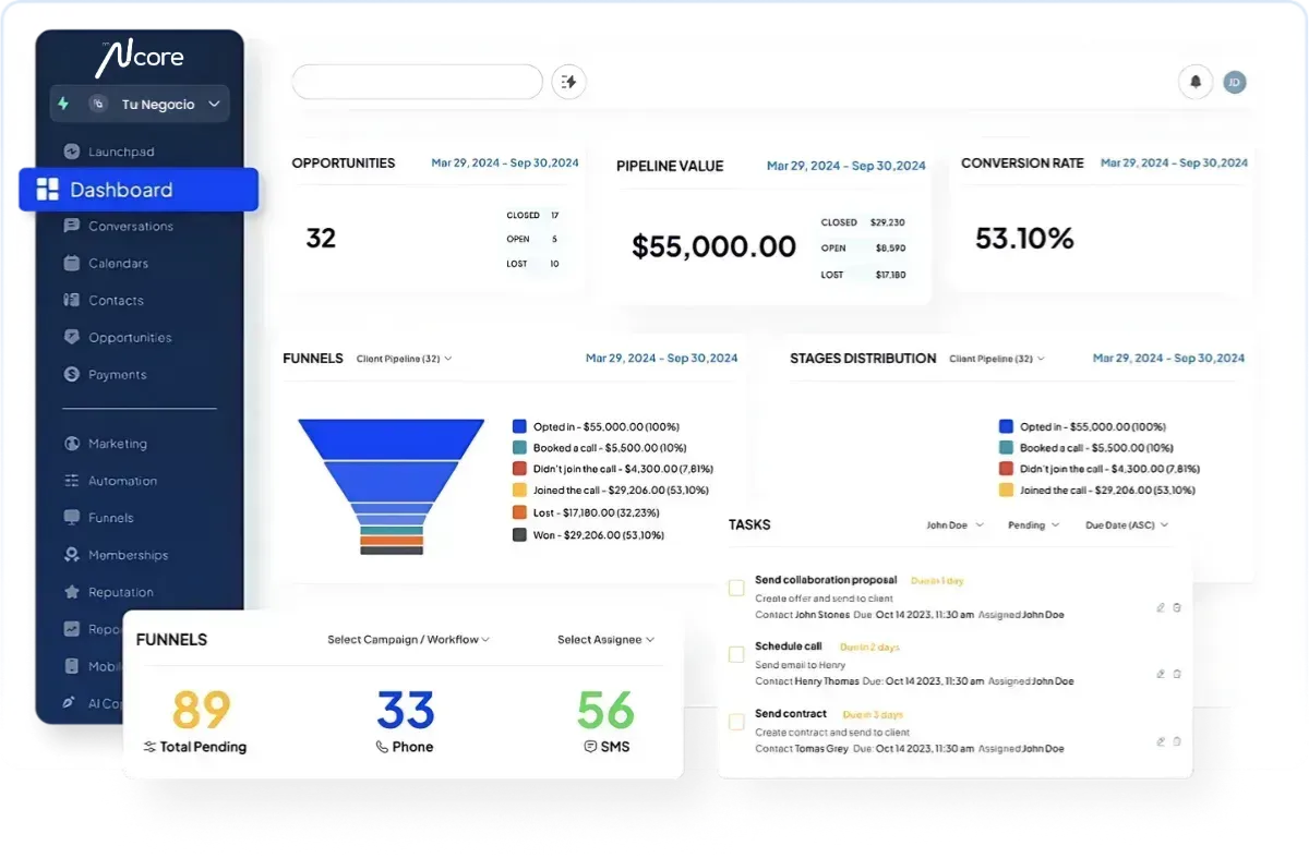 ICORECRM centraliza y automatiza TODO tu proceso de ventas y atención al cliente en un solo lugar. Olvídate de herramientas dispersas, tareas manuales y seguimientos que se pierden. Aquí tienes la tecnología y la estrategia integradas para que conviertas cada oportunidad en ingreso real.